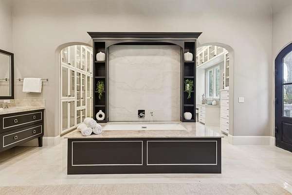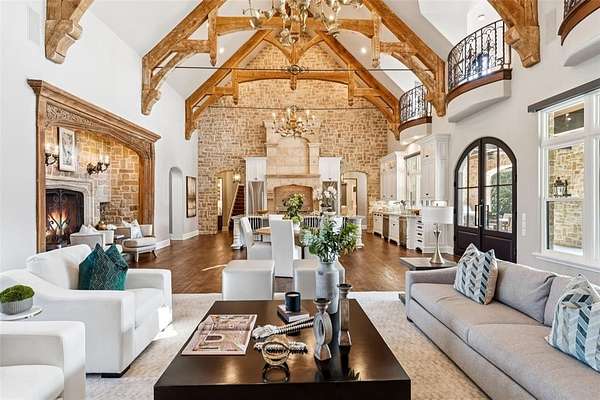 Welcome to this exceptional luxury estate in the highly coveted, gated community of The Landing on the North shore of Lake Grapevine--where refined elegance meets everyday luxury, spanning across 2 pristine acres. Recently reimagined with an extensive interior and exterior renovation, this architectural masterpiece blends classic European sophistication with the finest modern amenities. Beyond the new slate roof and striking black-framed windows, an all-new resort-style backyard awaits. From the stunning new pool and elevated spa to dramatic fire features, a serene loggia, and lighted stone steps, every inch has been thoughtfully curated for private outdoor entertaining. Mature trees provide year-round seclusion, with the home backing to a protected Corps of Engineers nature preserve--ensuring lasting privacy and serenity. Inside, expansive living spaces unfold beneath beamed and coffered ceilings, anchored by a grand family room overlooked by mezzanine sitting area with Juliet balconies and exquisite lighting. The chef's kitchen is a showpiece--fully updated and outfitted with premium appliances and custom finishes. A romantic owner's retreat features vaulted ceilings, sitting area, fireplace, and a newly redesigned primary en-suite bath with dual custom closets and an in-suite washer and dryer. Additional luxuries include a formal executive study with fireplace, a spacious home gym, and a separate living quarters--ideal for guests, multi-generational living, or a private studio. Car enthusiasts will appreciate the 2,850 sq ft heated garage space. With fresh designer paint inside and out, all-new landscaping, and exquisitely reimagined interiors--including a showstopping kitchen --this estate delivers the ultimate in turnkey, resort-style living. A true crown jewel, this irreplaceable legacy estate fuses timeless architecture, unparalleled privacy, and world-class amenities to stand among the most iconic luxury properties in all of North Texas.