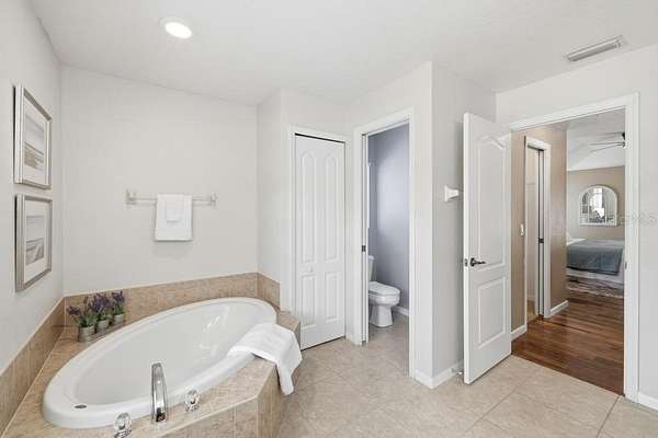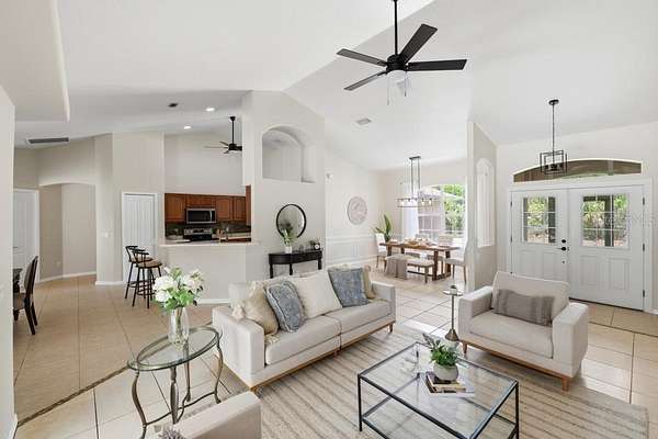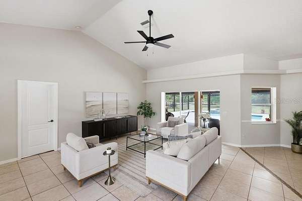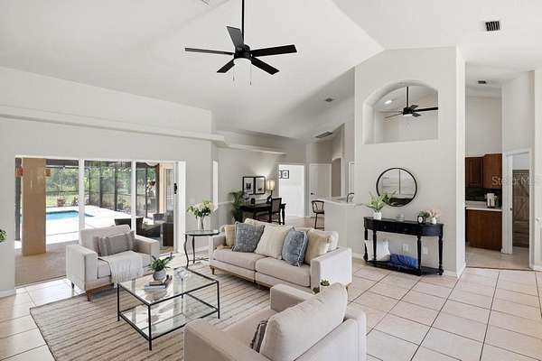 An extended screened porch leads into a beautiful foyer and great room with vaulted ceilings and a view of the nearly new pool. The split floorplan affords privacy and flexibility, with the master suite enjoying walk-in closets and an ensuite bathroom with a soaker tub and tiled shower. Bedrooms 2, 3 and 4 are split on the other side of the home with a full bathroom and access to the lanai.