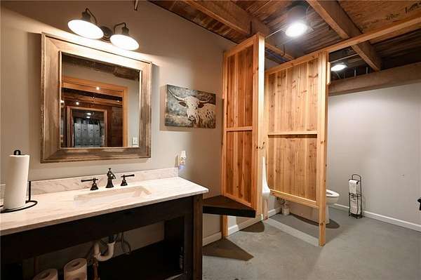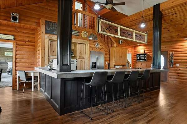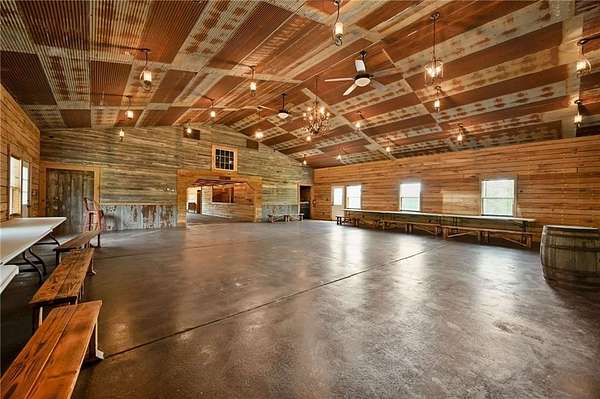 Welcome to Top of the World! Featuring 4 Seperate Living Spaces and Venue on this Sprawling 50+ acre estate nestled ontop of a bluff overlooking the arm of the Osage River and the town of Osceola. The event space offers a multitude of options from weddings, prom for the local school, men and womens retreats, cattleman's association dinner, baby showers, family reunions and more! The main home is 3 Bedrooms, 2 Baths with Great Room that is just that! Small House just on the back side of the main home, is 1 Bedroom 1 bath,with original ice house attached. Cabin 2 is 40x16 built in 2017 2 Bedrooms, 1 bath with side deck. Cabin 1 is 2 Bedrooms 1 bath with covered wrap around partial covered deck over pond . Venue has full kitchen, washer/dryers, storage, mens bathroom with 2 stalls, womens bathroom with 2 stalls, dressing agreas from men/women. Large covered patio and deck overlooking stocked pond. The property has Artesian well that provides the pond with fresh water. The main home has a 2 car detached garage that connects with breezeway. There are mulitple buildings on the property for storage and more.
