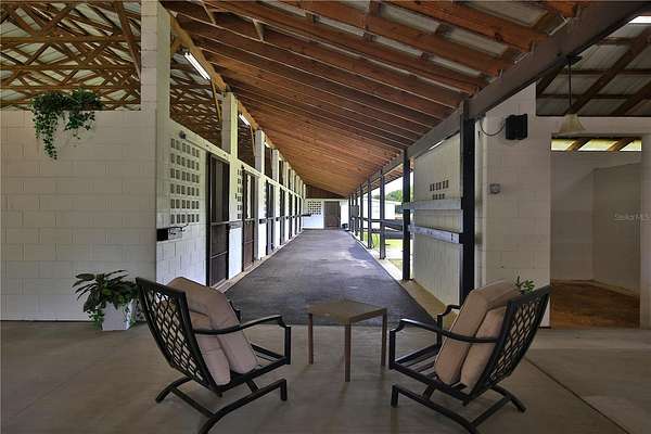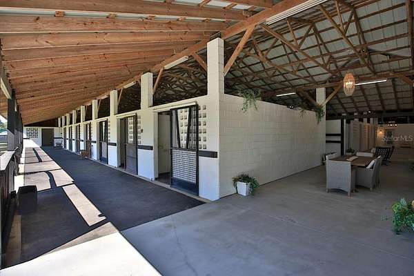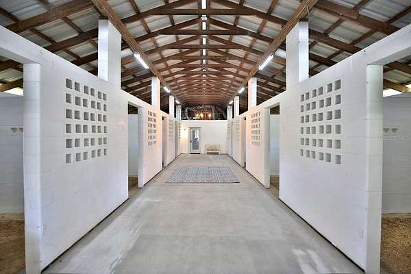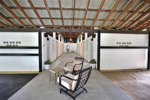 East Wing: 12 stalls, a spacious air-conditioned lounge/tack room, plus three newly constructed bedrooms, a full bathroom, and a separate laundry room--all equipped with new AC/heat units. These versatile spaces can easily convert into offices or additional lounges.