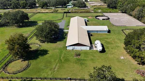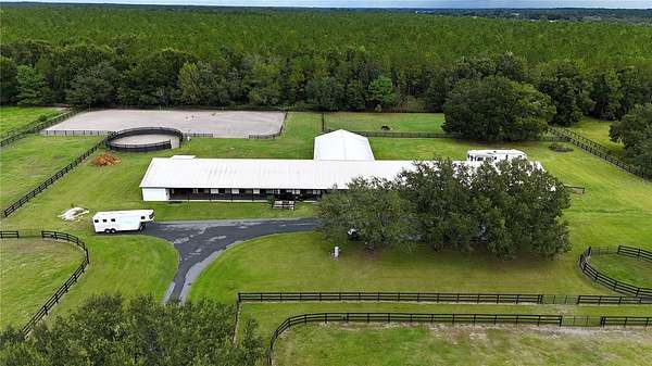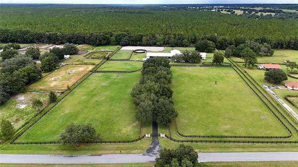 Enter through a striking oak-lined driveway and discover a turnkey facility ready for training, living, and entertaining. Elegant and fully remodeled 10-acre equestrian estate located in NW Ocala--just 4 miles from HITS and 18 miles from WEC. Nestled within the prestigious Starting Point Complex, this property is surrounded by a vibrant community of hunters, jumpers, dressage, pleasure, and racehorses, complete with bridle paths and optional access to a 5/8-mile training track.