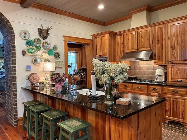 Step inside one of the finest homes in southeast Georgia. Breathtaking interior brick walls with two wood-burning fireplaces, heart pine floors throughout and specialty woods everywhere you look. Cabinets galore in almost every room including the mud room, butler's pantry, and office-nook. Exquisite finishes continue with arched openings into various rooms, including the entry/front door. Screen porches on multiple sides of the house with brick pavers on many interior/exterior floors. All solid core doors (interior and exterior) with high-end windows along with 10 foot ceilings and lots of storage throughout the home. Freshly painted cypress exterior with a three-car-garage and fenced in back yard. Adventure onto the sprawling property which includes metal storage buildings and a separate barn with enclosed fenced area for horses and other equipment/recreational uses. You don't want to miss seeing this home. You won't want to leave! Call Greg McKenzie Jr. at (912) 403-7287 to view.