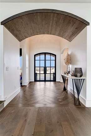 This 4 bedroom, 4.5 bath home is thoughtfully designed with 3 bedrooms down and one upstairs with a bonus theater room! The heart of the home is undoubtedly the gourmet kitchen where culinary dreams come alive. Outfitted with high end appliances, sleek countertops and ample storage. Just a step away is a bar area that opens to the outside entertaining space! Your grand entertaining will be satisfied in this home! The stunning wood floors are from California and the cathedral ceiling in the living features amazing beams from Virginia! Every inch of this custom home has been well thought out.
