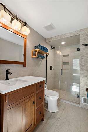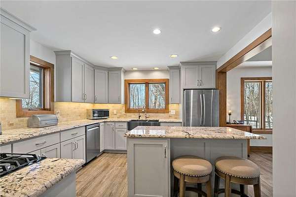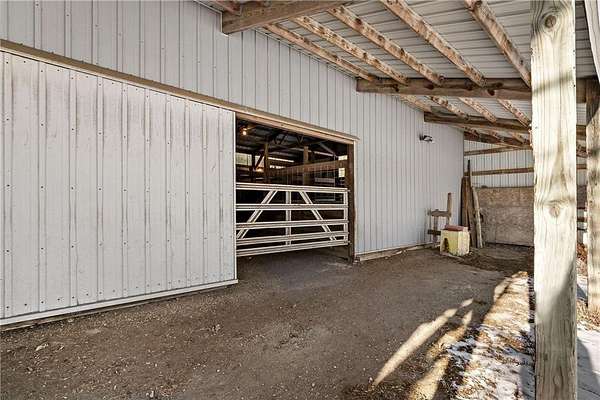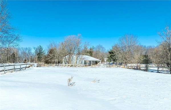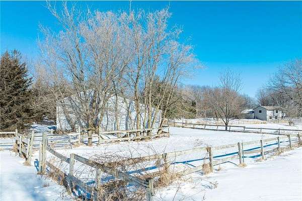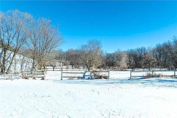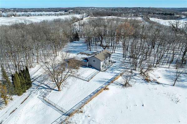 Rare opportunity to own a beautifully maintained nearly 10-acre property offering a perfect blend of woods, open grass, and pasture--ideal for those seeking space, privacy, and a true country lifestyle. The land is thoughtfully set up for animals and recreation, featuring a large pole barn (30x50) with room to board up to three horses, generous storage, attached lean-to, and workshop (potential to include a lawn tractor with attachments!). Multiple wood-fenced paddocks sit near the barn, while the vast pasture is enclosed with smooth round-wire fencing. A section of black chain-link fencing around the home provides a safe area for kids or household pets. Inside, the home features a stunning kitchen remodeled in 2020 with custom ceiling-height cabinetry, roll-out shelves and roll-out pantry storage, a built-in spice cabinet, hard-surface countertops, and a spacious center island with storage. A farmhouse sink, gas range, metal hood, and tile backsplash complete the space with timeless style. The upper level offers two very large bedrooms, including an owner's suite with a sitting area and walk-in closet. The upper-level bathroom was updated in 2021 with tile finishes, a glass shower door, and custom cabinetry. The walk-out lower level opens to the backyard and includes a large living room, third bedroom, and a beautifully updated bathroom (2020) featuring a fully tiled shower with built-in shelving, tile floors and walls, frameless glass door, and custom cabinetry. Major updates include a new roof in 2018, HVAC in 2016, all windows and doors replaced in 2021, water heater in 2022, washer and dryer in 2020, exterior paint in 2022, and a remodeled laundry room in 2023. All of this is set in a peaceful rural setting in Prior Lake and located in the highly regarded Jordan School District.
