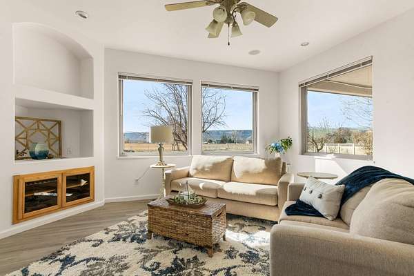Big skies. Big space. Big opportunity! This one is about to steal your heart. With a gorgeous home, a large shop, a fenced yard with mature lasndcaping & trees & an established pasture all situated on 5 irrigated acres with breathtaking 360 degrees views of the Colorado National Monument, Grand Mesa & Bookcliffs, this property offers the freedom and flexibility you've been looking for with no HOA. Bring the animals, the toys, the projects, and the big plans! There's room for it all. Inside, you'll find over 3,000 square feet of living space designed for comfort and entertaining, complete with two wet bars & two living areas, 2 balconies, 4 spacious bedrooms & a large covered patio, all perfect for hosting game nights, holidays, or even multi-generational living. Recent big-ticket upgrades mean peace of mind and move-in-ready convenience, including: ~ Owned Solar for energy efficiency ~ New Roof ~ New Windows & Sliding Doors ~ Fresh Paint ~ New Carpet Need workspace? Storage? A place for your hobbies or business? The large shop gives you room to create, build, and store without compromise. This is Western Colorado living at its best! Space, privacy, updates, views, and versatility all wrapped into one rare property. Let's get you in today!