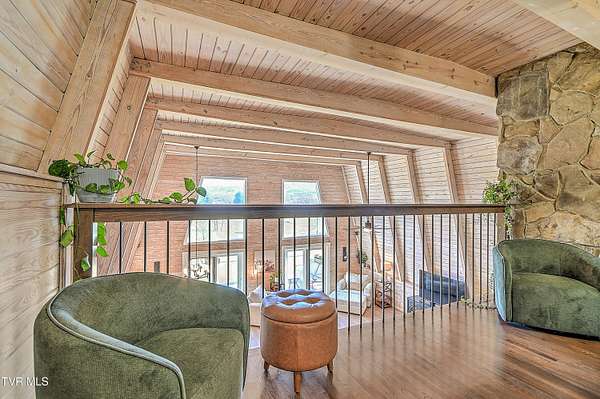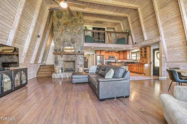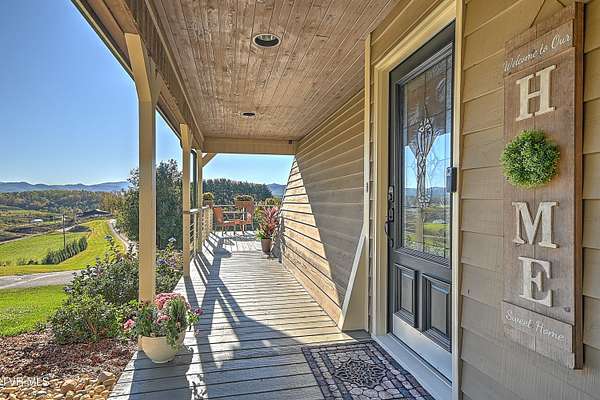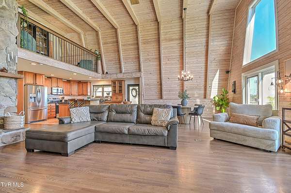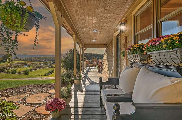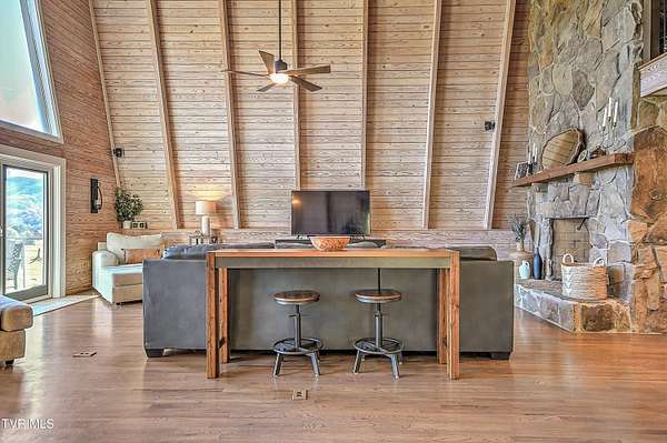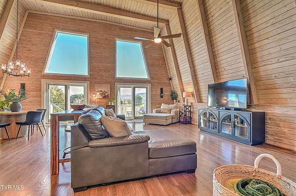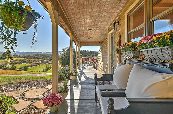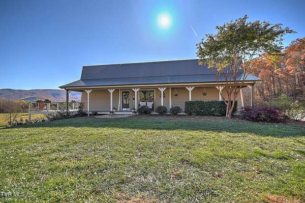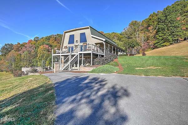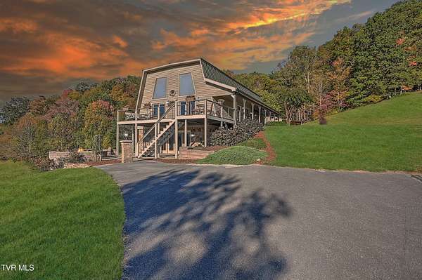 ~Mountain Chalet with Panoramic Views on 9.32 Acres~ Escape to your own private mountain retreat in this custom-built 3-bedroom, 3-bath chalet-style home perfectly positioned to capture some of the best mountain views in all of Washington County-and possibly all of Southwest Virginia! Step inside and be welcomed by soaring ceilings, massive picture windows, and a stunning river rock fireplace that anchors the great room and spans all three levels. The main level offers a warm and open layout with hardwood floors refinished in 2024, a spacious kitchen, convenient laundry, two bedrooms, and a full bath. Upstairs, you'll find a loft overlooking the great room-ideal for a reading nook or home office-and an expansive primary suite featuring a walk-in closet, jetted tub, walk-in shower, and breathtaking mountain views. The lower level offers incredible flexibility with a full living area, kitchen, washer/dryer hookups, and separate entrance, making it perfect for an in-law suite, guest quarters, or Airbnb income opportunity. There's also a fourth room downstairs that could serve as a home office, playroom, or gaming space. Outside, you'll fall in love with the massive front deck designed for soaking in sunrise and sunset mountain views, plus a long covered side porch perfect for quiet afternoons. The 9.32-acre property offers a mix of open and wooded areas, ample parking, and a 30x30 garage/workshop with carport-ideal for hobbies, storage, or extra vehicles. Perfectly situated for both privacy and convenience, you're just 6 miles from Exit 19 in Abingdon, 4 miles from downtown Damascus-''Trail Town USA'', 1 mile from the Virginia Creeper Trail and the South Fork of the Holston River, and 3.5 miles from Alvarado Station. The area is surrounded by endless hiking, biking, fishing, and outdoor adventure opportunities, offering the best of mountain living with easy access to nearby towns. If you've been searching for a mountain home that combines privacy, craftsmanship, and versatility-all with truly unmatched views-this is the one you've been waiting for. *Broker/Owner- all information believed to be accurate but not guaranteed* A few of the outdoor photos were taken before the roof and gutter replacement.