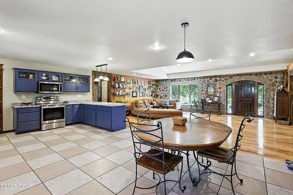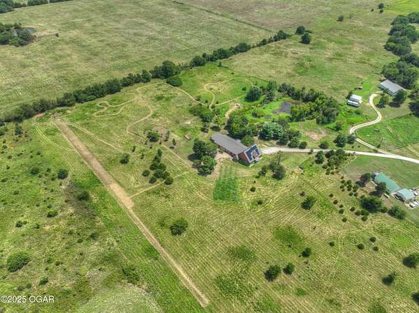 A Truly Unique Estate on 9.9+/- Acres Discover a one-of-a-kind property blending modern comfort with serene country living. This six-bedroom, 3.5-bath home offers thoughtful amenities throughout, including a private theatre room and an indoor storm shelter for peace of mind. The heart of the property is its scenic landscape-featuring a tranquil pond, a koi pond with waterfall, and an orchard producing pecans, walnuts, apples, grapes, and blackberries. A water feature invites relaxation, while a 200-yard shooting range caters to recreation. Recent upgrades include all-new appliances (under warranty), a new HVAC system, and brand new solar panels -making the home all-electric and energy efficient. Located in the East Newton School District, this retreat is just 20 minutes from Joplin, Neosho, and Carthage.