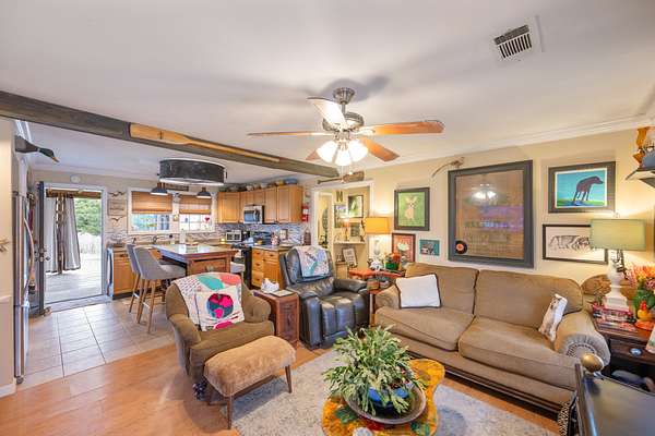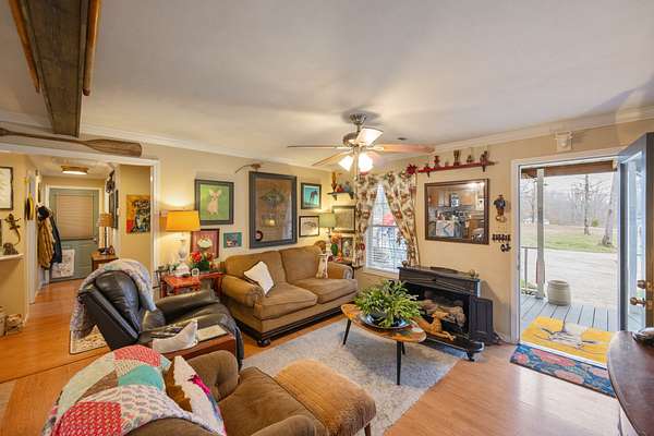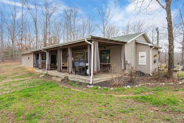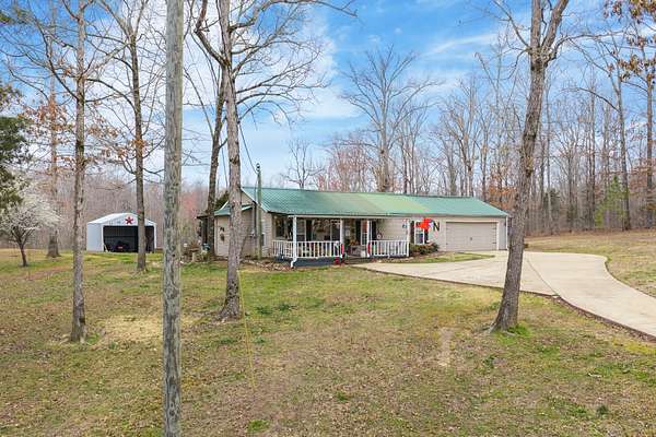 Privately Located Country Charmer on 1.89 Acres Near the Tennessee River! Enjoy peaceful country living just ½ mile (as the crow flies) from the TN River & a nearby boat launch/marina. A concrete drive leads to this inviting 3 BR 2 BA home nestled in the countryside. A welcoming covered front porch opens into an airy open-concept living & kitchen area, highlighted by a decorative gas fireplace with its own thermostat. The kitchen is truly one-of-a-kind, featuring a repurposed antique piece transformed into a stunning island/breakfast bar, topped by a creative light fixture made from a vintage shop fan. A stainless farmhouse sink sits beneath a window offering beautiful countryside views. Charming antique French doors lead to the adjoining laundry room. The peaceful primary suite offers a large tiled walk-in shower. Two additional BRs share a delightful hall BA featuring a unique antique table vanity with a vintage ceramic bowl sink. The oversized attached 2-car garage is heated/cooled & could be finished for up to 864 additional sq ft of living space. Outdoor living shines with a 12x42 covered back porch overlooking the private landscape, fruit trees, & nice fire pit—perfect for relaxing or entertaining. Curtains allow the space to be enclosed on cooler evenings. A 16x24 barn/shed provides excellent storage for a boat, equipment, or outdoor toys. Conveniently located between Memphis & Nashville, just 10 m to I-40 & 10 m to the TN River town of Parsons. With the river only minutes away, you can store your boat at home & enjoy easy access to the water. Ideal for a full-time residence, retirement retreat, or weekend getaway!