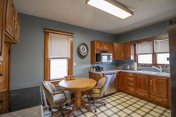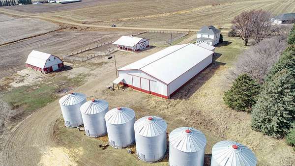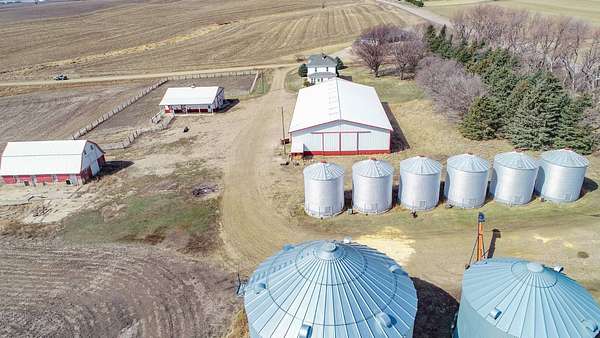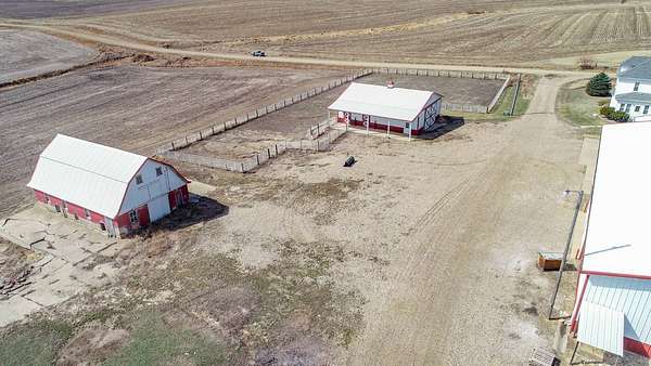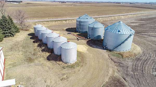 This impressive acreage for sale outside of Alvord, IA offers a spacious 5-bedroom, 1-bathroom house situated on a hard-surfaced road, ensuring year-round accessibility. The main floor features a kitchen, dining room, and living room with large windows that bring in natural light. Pocket doors between the dining and living areas highlight the beautiful woodwork throughout the home. The main floor also includes one bedroom and a bathroom. Upstairs, you'll find four generously sized bedrooms, offering plenty of space for family or guests. The property features multiple outbuildings, perfect for a variety of uses. A 36? x 48? building, built in 2011, offers a concrete floor and is fenced in, making it an excellent space for horses or livestock, though it is not insulated. Additionally, there is a 30? x 50? storage building and a 60? x 106? Morton shed, built in 1995, both with partial concrete floors but not insulated. A 36? x 43? unattached garage provides additional storage or workspace. The property also includes several grain storage options, including a 42? Brock grain bin built in 2006, a 30? MFS grain bin with dryer built in 2003, and six 3,000-bushel bins, offering ample storage capacity for grain. Sellers are willing to rent the grain bins along with machine shed from the new buyers! Contact agent for details!