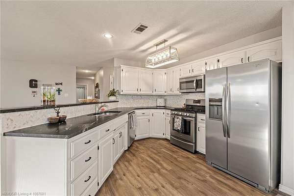 Beautiful home in an amazing location with easy access to Fort Smith and sitting on a gorgeous 3.24 acres with a huge drive-through 32 X 36 workshop with enough room for 4 vehicles, and includes a 10 X 11 office, and a half bath perfect for your home business! From the moment you walk in, this just feels like home. You're going to love the open and airy floor plan throughout, with a spacious living room overlooking your peaceful backyard, whether watching the kids play or just enjoying the view. The gorgeous kitchen has beautiful white cabinets, newer granite countertops, stainless steel appliances, including a refrigerator, and a new dishwasher! Large primary suite with plenty of space to unwind after a long day. She will also love the separate makeup vanity for easy mornings. 2 closets, and one is a nice walk-in closet for her! Nice-sized additional bedrooms for the kids, remodeled hall bath, and a huge additional room that can be a 4th bedroom, family room, game room, office, or a great workout room! The massive shop outside can hold your cars, and the drive-through double garage door feature is perfect for loading and unloading your boat, ATV, or lawn mower! Use the additional room in the garage to run your business or organize and store all your hunting and fishing gear! The huge yard has plenty of space to add a pool, trampoline, and room for all your pets to run and play, too! Updates include a brand new roof in 2025 on the house and shop, newer luxury vinyl plank floors, newer paint, and light fixtures! With this great home, you can work, play, and relax. Conveniently located close with an easy drive to Fort Chaffee, Chaffee Crossing, and less than 10 miles to Fort Smith. Work, play, and relax in this incredible home. Come home to 2108 River Rd.