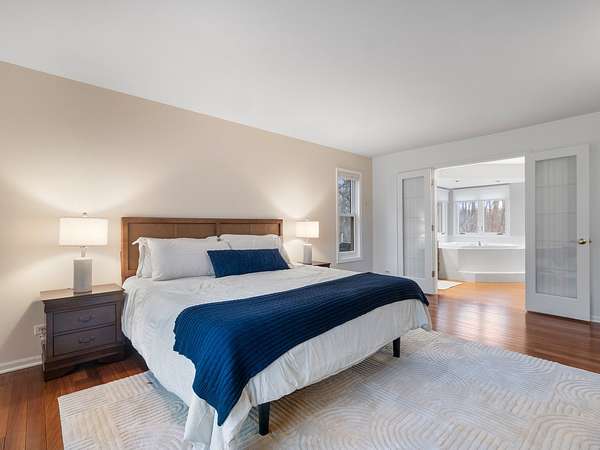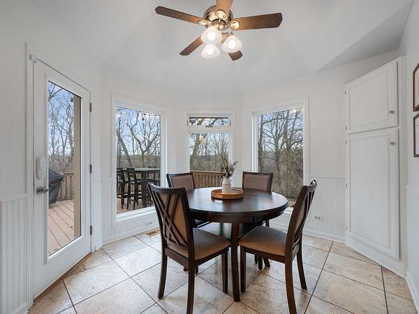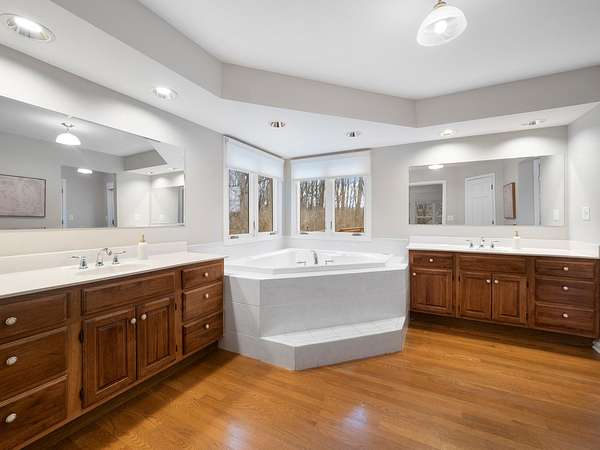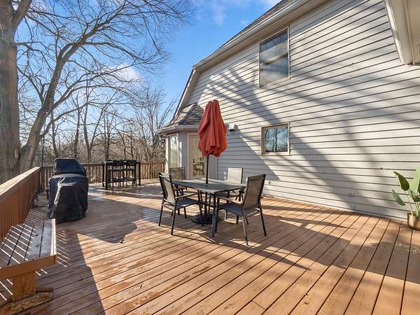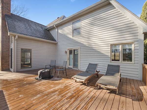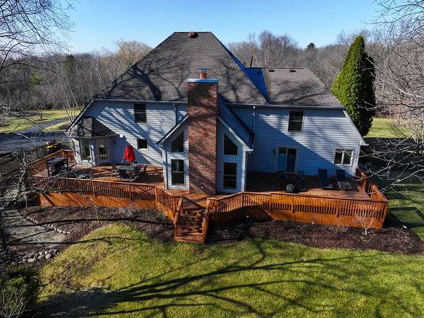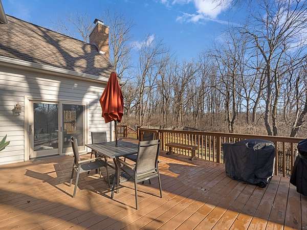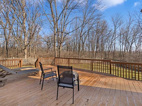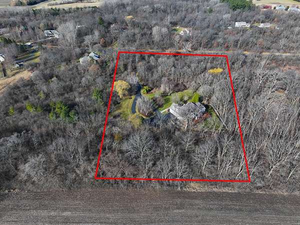Discover this exceptional custom home nestled on a serene 5-acre wooded lot. As you drive up the winding drive, you'll be greeted by the beauty and tranquility of nature, offering the perfect private retreat. Upon entering the two-story foyer, you'll immediately notice the superior craftsmanship throughout. The main floor boasts a luxurious primary suite with a spacious bathroom, walk-in closet, and direct access to a wrap-around deck, perfect for enjoying the picturesque surroundings. The heart of the home is the great room, featuring a stunning 16' vaulted ceiling, a gas fireplace, and hardwood floors. The updated kitchen is a chef's dream, complete with a large island with counter seating, granite countertops, a Wolf range, a SubZero refrigerator, and a new dishwasher. Enjoy your morning coffee in the charming breakfast bay overlooking the scenic wooded yard. A formal dining room, living room, laundry room, and two half baths provide ample space for family and guests to complete the main level. A split staircase leads to a versatile loft area upstairs, three spacious bedrooms, and a bonus room over the garage, ideal for a recreation room or playroom. One bedroom features a private ensuite bath, perfect for your guests, while the other two share a Jack and Jill bath. The full basement offers daylight windows, a workshop, a home gym space, plenty of storage, and direct access from the three-car garage. The property is beautifully landscaped with a fire pit to enjoy on a brisk evening and nature trails winding through the woods, and has a large fenced yard for added privacy. the recent updates ensuring peace of mind and modern comfort, include: Marvin windows, furnace (2020), central air and water heater (2021) New dishwasher (2023) Whole-home interior painted (2022) Tear-off roof, gutters, upgraded soffits and attic vents, and new attic insulation (2022) New water softener and iron remover (2022) Some rooms freshly painted (2026) New living room tile floor and wood floors in the family room and three bedrooms (2022) LED lights, and GCFI Outlets in the basement (2022) This home combines elegance, comfort, and privacy, making it a perfect choice for discerning buyers. Horses allowed. Take advantage of the opportunity to own this exquisite property. Schedule your showing today!