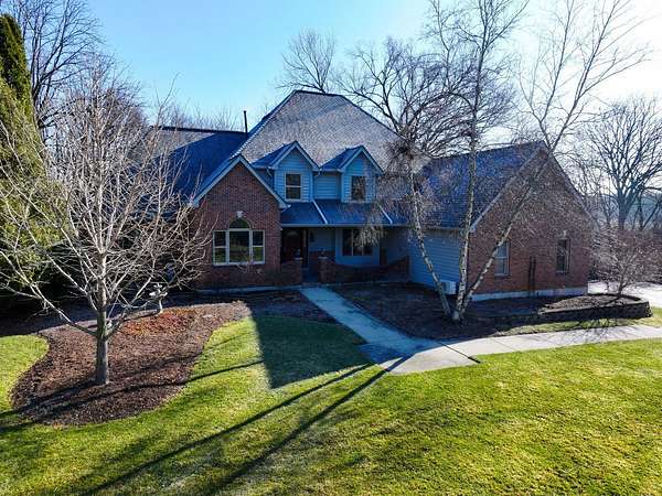 Discover this exceptional custom home nestled on a serene 5-acre wooded lot. As you drive up the winding drive, you'll be greeted by the beauty and tranquility of nature, offering the perfect private retreat. Upon entering the two-story foyer, you'll immediately notice the superior craftsmanship throughout. The main floor boasts a luxurious primary suite with a spacious bathroom, walk-in closet, and direct access to a wrap-around deck, perfect for enjoying the picturesque surroundings. The heart of the home is the great room, featuring a stunning 16' vaulted ceiling, a gas fireplace, and hardwood floors. The updated kitchen is a chef's dream, complete with a large island with counter seating, granite countertops, a Wolf range, a SubZero refrigerator, and a new dishwasher. Enjoy your morning coffee in the charming breakfast bay overlooking the scenic wooded yard. A formal dining room, living room, laundry room, and two half baths provide ample space for family and guests to complete the main level. A split staircase leads to a versatile loft area upstairs, three spacious bedrooms, and a bonus room over the garage, ideal for a recreation room or playroom. One bedroom features a private ensuite bath, perfect for your guests, while the other two share a Jack and Jill bath. The full basement offers daylight windows, a workshop, a home gym space, plenty of storage, and direct access from the three-car garage. The property is beautifully landscaped with a fire pit to enjoy on a brisk evening and nature trails winding through the woods, and has a large fenced yard for added privacy. the recent updates ensuring peace of mind and modern comfort, include: Marvin windows, furnace (2020), central air and water heater (2021) New dishwasher (2023) Whole-home interior painted (2022) Tear-off roof, gutters, upgraded soffits and attic vents, and new attic insulation (2022) New water softener and iron remover (2022) Some rooms freshly painted (2026) New living room tile floor and wood floors in the family room and three bedrooms (2022) LED lights, and GCFI Outlets in the basement (2022) This home combines elegance, comfort, and privacy, making it a perfect choice for discerning buyers. Horses allowed. Take advantage of the opportunity to own this exquisite property. Schedule your showing today!