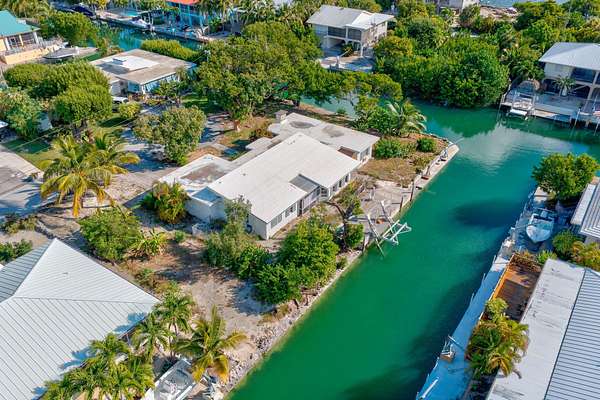 An exceptional opportunity awaits in one of the Lower Keys' most desirable neighborhoods. This oversized corner lot is ROGO exempt and comes with approved building plans already on file with Monroe County, allowing you to skip the waiting line and begin building your dream home immediately. The existing structure is scheduled for demolition in early December, clearing the way for a seamless transition from vision to reality.Set on a spacious corner canal parcel, the property boasts approximately 280 feet of water frontage, providing panoramic canal views and generous dockage potential. A brand-new 17,000 lb. boat lift is already installed, ready for your vessel. With deep-draft oceanside access just moments away, this location is ideal for boating enthusiasts who need quick and easy access to open water. Cudjoe Gardens is one of the few neighborhoods in the Lower Keys offering a full-service marina, a public boat ramp, and the locally loved Bent Prop restaurant, all within the community. Whether you're ready to build your full-time residence or a seasonal escape, this property offers a rare chance to create a custom home in a prime waterfront setting without the long ROGO wait.