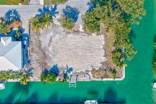 An exceptional opportunity awaits in one of the Lower Keys' most desirable neighborhoods. This oversized corner lot is ROGO exempt and comes with approved building plans already on file with Monroe County, allowing you to skip the waiting line and begin building your dream home immediately. The existing structure has been demolished, clearing the way for a seamless transition from vision to reality.Set on a spacious corner canal parcel, the property boasts approximately 280 feet of water frontage, providing panoramic canal views and generous dockage potential. A brand-new 17,000 lb. boat lift is already installed, ready for your vessel. With deep-draft oceanside access just moments away, this location is ideal for boating enthusiasts who need quick and easy access to open water. Cudjoe Gardens is one of the few neighborhoods in the Lower Keys offering a full-service marina, a public boat ramp, and the locally loved Bent Prop restaurant, all within the community. Whether you're ready to build your full-time residence or a seasonal escape, this property offers a rare chance to create a custom home in a prime waterfront setting without the long ROGO wait.