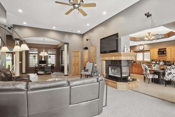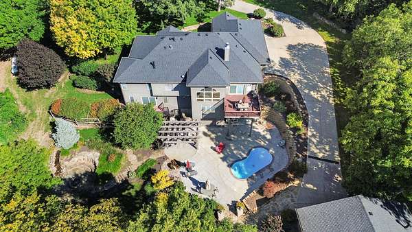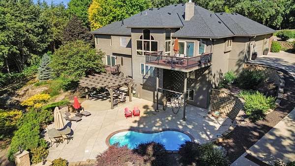 An acreage like this almost never hits the market. Nearly 5,500 sq ft on 5.3 acres delivers the space, privacy, and lifestyle buyers are chasing but rarely find. The home offers 5 bedrooms, 3.5 baths, soaring ceilings, dual fireplaces, and a private suite, all maintained with pride by the original owner. Two finished lower levels provide a wet bar, rec room, storage, and flexibility for entertaining or extended living. Outside, everything is already here: saltwater pool with stone shower, fire pit, water features, timber trails, mature landscaping, and a heated 36x60 shop. With updated roof, HVAC, and mechanicals, it's ready to enjoy from day one. Homes at this level don't wait! Schedule your showing today or risk watching someone else claim the lifestyle you've been searching for.