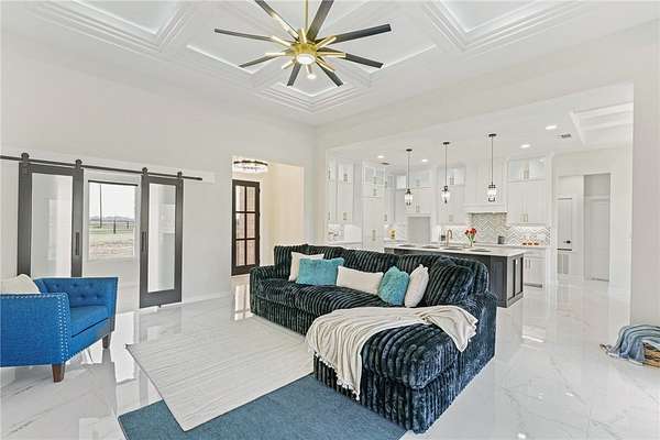 - Ceiling Fans, Dry Bar, Home Office, Kitchen Island, Open Floorplan, Split Bedrooms