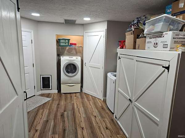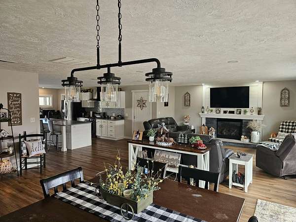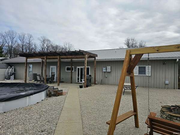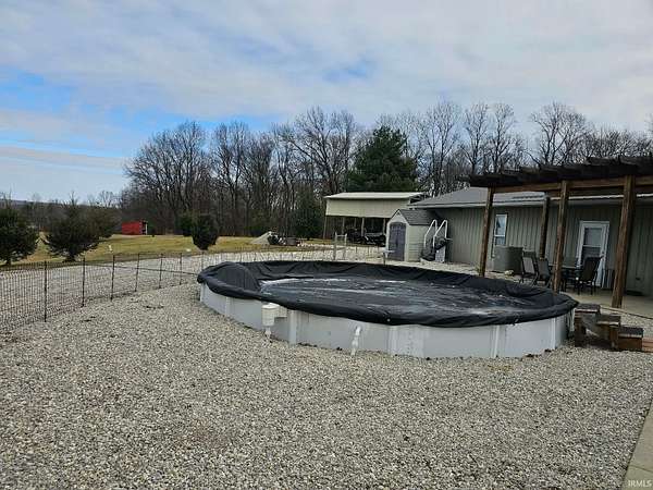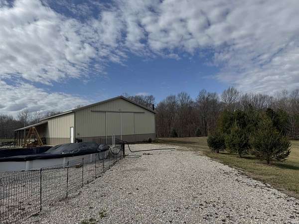 Spacious charming 3 bedroom, 2 bath pole barn home situated on appox 6 beautiful acres! This well-maintained property features a large owner's suite with private bath and walk-in closet, plus two additional nice-sized bedrooms (one currently used as an office with its own electric fireplace). The open concept living, dining, and kitchen area offers large picture windows with scenic views, a gas fireplace with remote, gas stove, impressive 10x4 island with oversized sink, and a walk-in pantry with slide-out shelving. Mud room off the kitchen leads to the 2.5+ car garage. Vinyl flooring throughout and numerous upgrades add to the home's appeal. Enjoy outdoor living with a covered back patio, firepit area, large fenced pet area, and a partially buried 24' above-ground pool. The large pole barn is mostly concrete with two 12x24 gravel areas (previously used for livestock), plus lean-to space. Additional features include a camper carport, yard barn, garden shed, and even a 50-yard gun range. All appliances are included.