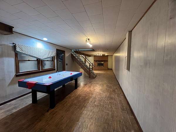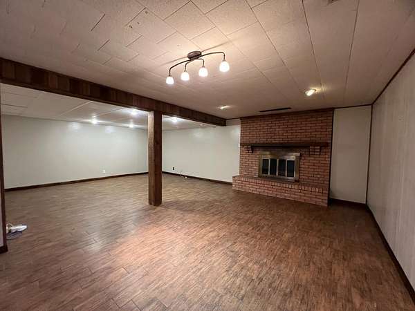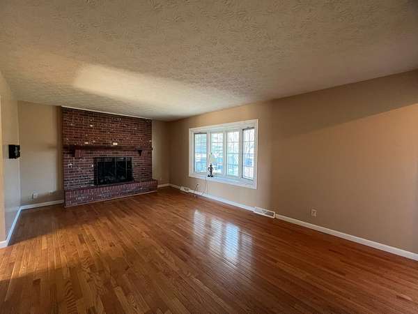 Est $1,939/mo3 bedroom 2 bath brick ranch on 1.5 acres near Bright. Living room with wood burning fireplace, eat in kitchen. Lower level is also finished with a bar and another wood burning fireplace plus and an additional half bath. Amenities include a covered pavilion porch, patio, paved driveway, metal shingle roof, hardwood and tile floors, and connected to city sewer, water and gas.