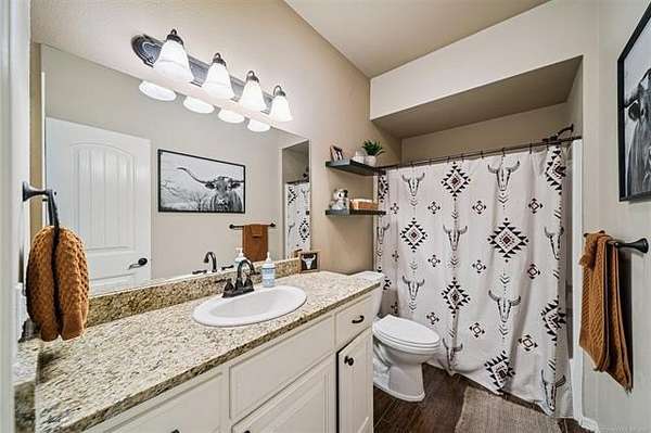 From Hwy 64 in Haskell heading south, turn right on W Duncan Rd (right in front of baseball fields) continue for approx. 1 mile and home will on north side of road. Gated entry.