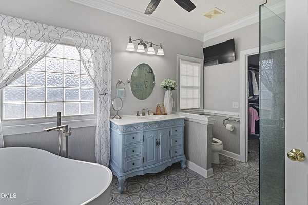 - Bathtub/Shower Combination, Cathedral Ceiling(s), Ceiling Fan(s), Dining L, Entrance Foyer, Granite Counters, High Ceilings, Pantry, Primary Downstairs, Recessed Lighting, Soaking Tub, Tray Ceiling(s), Walk-In Closet(s)
