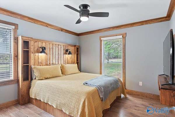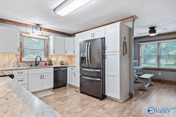 Est $2,655/moBeautifully remodeled 3Br/2Bth on 2.9 Private Acres with seasonal lake views. This rustic-modern home features custom built-ins, leathered granite countertops in kitchen and baths, and a bright 4 season sunroom. Enjoy outdoor living on the large covered back deck overlooking peaceful surroundings. Recent updates include new roof and landscaping. The spacious 3 car garage with attached workshop offers exceptional functionality and storage. Conveniently located near downtown Guntersville and Huntsville perfect for a private residence or upscale retreat.