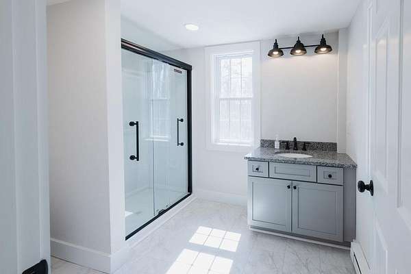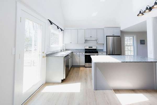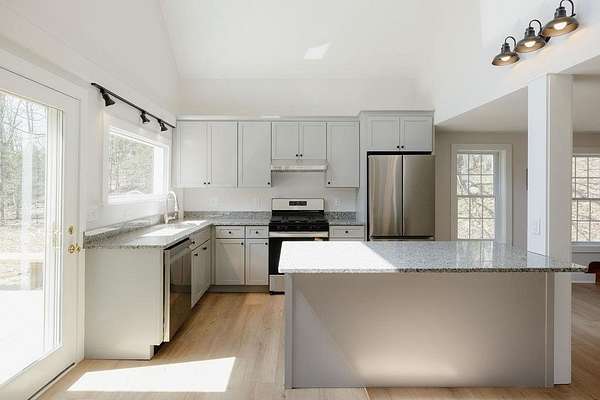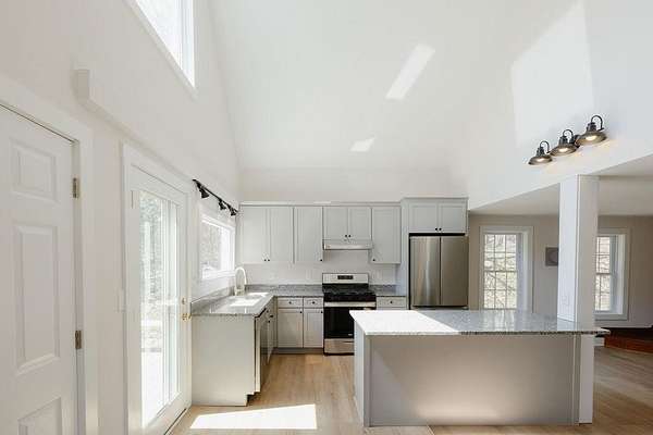 Exquisitely renovated and masterfully reimagined, this exceptional residence offers a rare opportunity to enjoy refined living just 0.2 miles from the pristine shores and public boat launch of Silver Lake. Every detail has been thoughtfully curated in this comprehensive transformation, seamlessly blending modern sophistication with the home’s original charm and character. The heart of the home is a designer gourmet kitchen, featuring elegant granite countertops, an expansive center island, and premium stainless steel appliances—perfectly suited for both intimate gatherings and elevated entertaining. The primary suite serves as a private sanctuary, complete with a beautifully appointed spa-inspired bath showcasing stone surfaces and a custom glass-enclosed shower. Additional living spaces are equally impressive, with two second-floor bedrooms and a versatile first-floor office or study that can effortlessly function as a guest suite. Potential configuration for ADU or In-Law suite. Designed for comfort and convenience, the home includes a second custom full bath, a stylish half bath with first-floor laundry, and all-new mechanical systems. Upgrades include new wiring, plumbing, and an efficient heating and cooling system featuring propane heat, an electric heat pump, and supplemental baseboards. Home has standby generator for added peace of mind. Warmth and ambiance abound with a pellet stove insert set within the living room’s hearth, complemented by a classic wood-burning fireplace in the formal dining room. Step outside to a newly constructed deck—an inviting space to relax and unwind in a peaceful setting. Additional enhancements include a new roof, windows, insulation, and flooring, ensuring turnkey ease for years to come. All just a short stroll to the sparkling waters of Silver Lake, this property embodies the perfect balance of luxury, comfort, and timeless New England appeal—ideal as a year-round residence or an elegant guest house for a Silver Lake home.