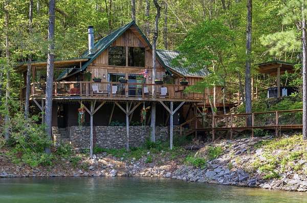 Est $3,427/moSmith Lake (Brushy Creek) If this home was a yacht, the name would be ''Authenticity''. Truly what a lakehouse should be! Sitting on two waterfront lots right across from The Bankhead National Forest! This cottage is tucked away in a deep water cove with crystal clear water. Main level has brick pavers, fireplace, and soaring windows. A cozy covered outdoor area extends your living space.