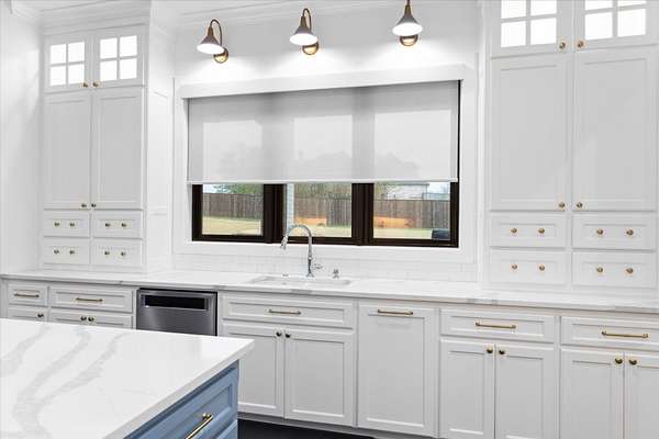 Stunning 2022 Newland Properties home with designer finishes curated by WG Interiors, set on a private 1.5-acre corner lot with a resort-style pool in the gated Hillcrest Trails community in Hallsville ISD. This 3,440-square-foot open-concept residence features a chef's kitchen with quartz countertops, expansive island, gas range, and a wet bar, ideal for entertaining, along with an impressive walk-in pantry. Hardwood floors in the living areas and primary suite, elevated lighting, and custom shades throughout create a refined yet inviting atmosphere, while a versatile additional room--currently used as a dining space--offers flexibility as a formal dining room, home office, or second living area. The serene primary suite includes a spa-like bath and generous walk-in closet, complemented by thoughtfully designed secondary bedrooms and bathrooms. Additional highlights include a whole-home generator, two tankless gas water heaters, a three-car garage, and an expansive covered patio completing this exceptional luxury retreat.