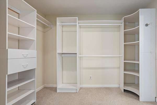 - Cable Available, Ceiling Fan(s), Eat-In Kitchen, Kitchen Island, Pantry, Primary Downstairs, Second Kitchen, Snack Bar, Solid Surface Counters, Walk-In Closet(s)