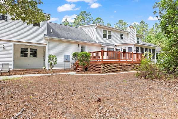 Discover this stunning traditional home situated on 6.68 acres. This offers both privacy and space for outdoor activities. Horses allowed. This remarkable property features a very large garage apartment, complete with its own separate entrance, making it ideal for guests or in-laws. The main house boasts elegant architectural details, spacious living areas, and a beautiful landscape that enhances the charm of this serene retreat. Enjoy the perfect blend of classic design and modern functionality in a picturesque setting. Inside, the spacious primary suite boasts a cozy sitting room, built-in bookshelves, and a newer ensuite bath complete with a jacuzzi tub and separate vanities. The great room showcases a rock fireplace, providing a warm and inviting atmosphere, and opens to a well-appointed kitchen with a delightful breakfast area. Opening from the great room is a cooled sunroom overlooking the wooded property. At the front of the home, an elegant formal living and dining room await. Area is perfect for entertaining guests or enjoying gatherings. This home harmoniously blends classic with modern living. Features include a new A/C for the upper level, gourmet kitchen with custom cabinets and ample counter space. There is a movable Island in the center of the kitchen. Open living and dining areas. Located off of the back entrance is a feature with a mud room that leads into the spacious Craft/Laundry area that includes large cabinets for storage and crafts. Lots of counter/desk space that includes a utility sink and separate toilet. Garage apartment with its own entrance from outside. Additional bedrooms upstairs with a bonus room or bedroom and another entrance to the apartment off of the hallway behind the bonus room. Separate Workshop/Garage has a single door entrance as well as a full garage door. Peaceful, wooded surroundings with plenty of room for gardening, recreation or even horses. Conveniently located minutes from downtown Aiken, equestrian facilities and local shopping. This property blends charm, privacy and functionality in one exceptional package!