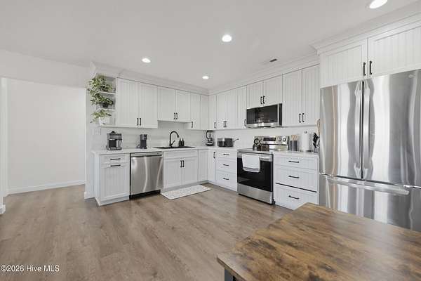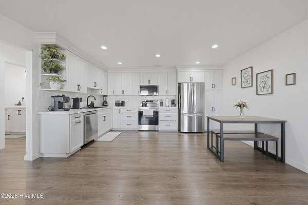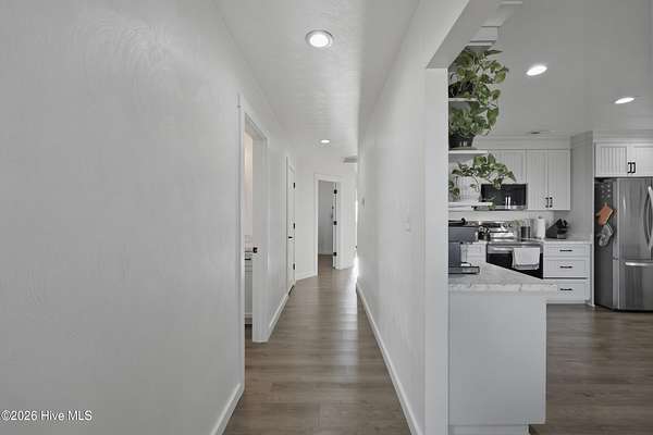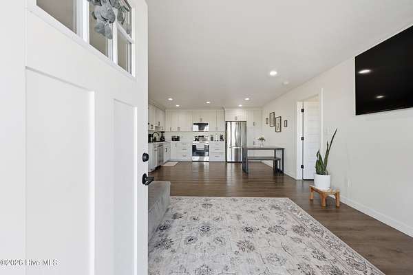 Welcome to this almost new build 2024 ranch style home offering, 3-bedroom, 2-bath, situated on nearly 2 acres. Offering 1,406 sq ft of comfortable living space, including a large laundry room and two car garage, and the convenience of city water and sewer, this home delivers what so many buyers are searching for privacy, land, and simplicity without giving up convenience. This open floor plan offers stainless steel appliances, and durable stain resistant laminate wood flooring. The primary suit includes a large walk-in closet. Do not miss this recently built low maintenance ranch style home with the perfect blend of country and comfort with the privacy many are asking for and still a short drive to shopping, grocery stores, restaurants, state parks and more. Located near highway 17 for easy commute to Elizabeth City and points south or the Hampton Roads Metro area.