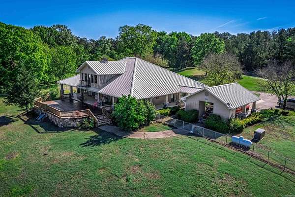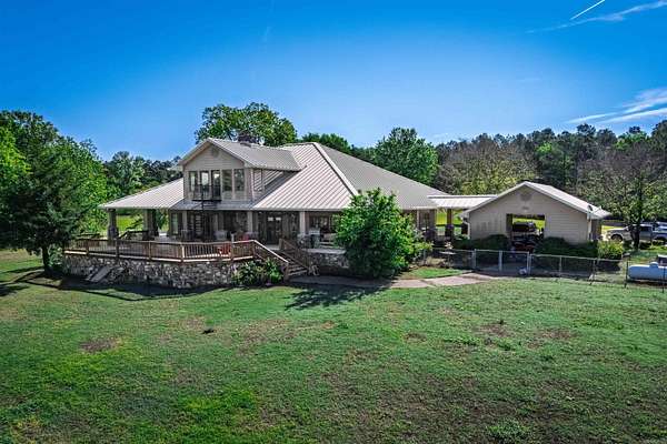 Welcome to an extraordinary legacy property at 211 Hale Rd, Okolona, Arkansas—offering over 545 acres of refined ranch living, recreation, and investment potential. The main residence features 3 bedrooms, baths, an open-concept layout with soaring ceilings, a striking stone fireplace, granite countertops, custom cabinetry, and durable stained concrete floors, plus a fenced backyard. A well-appointed 2 bed, 2 bath guest house showcases abundant windows, natural light, lake views, and a cozy fireplace, creating a private retreat for guests or family. The property is fully equipped for livestock and equestrian use with a top-tier horse barn, custom cattle working pens, and four fenced grazing pastures. A large shop includes an office, full bath, and kitchen-equipped breakroom. The breathtaking 60-acre private lake, designed with Corps of Engineers influence, features a concrete boat ramp and multiple docks, alongside a second stocked pond. A rare blend of luxury, functionality, and natural beauty. Agents see agent remarks.
