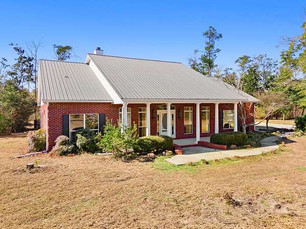 This beautiful custom built brick home offers seamless indoor-outdoor living, centered around 5.7 private acres, sparkling in-ground 30'X14' gunite pool with ample space for lounging and al fresco dining. Upon entering, you're greeted by a spacious living room with a 16ft vaulted ceiling, while the rest of the home features 10ft ceilings. This move-in ready home offers an open-concept, functional spacious living areas, and layout suitable for multigenerational living. The split floor plan offers both communal gathering spots and personal retreat. This spacious 4-bedroom, 3.5-bath home offers 2,571sf of comfortable living space with the option of using the office as a 5th bedroom. One bedroom features custom built-in bunk beds, a rock-climbing wall, and a sturdy hanging climbing rope turning bedtime into a thrilling, action-packed adventure. The kitchen has many upgrades including stainless steel appliances and granite countertops. The detached garage has a gorgeous guest house with 397sf heated and cooled with a mini-split system. The guest house has a kitchen, full bath, W/D hook-ups, and bedroom. You could rent out the guest house or have a place for family & friends to have an extended stay. Attached to the guest house is a 25'X14' workshop. There is a 2020 20'X25' metal storage building with an attached 32'X25' carport and concrete pad. Love fresh eggs? With a little TLC you could bring back to life the chicken coop and run. There are lots of homestead possibilities for self-sufficiency! Wewahitchka has an abundance of lakes and rivers for freshwater fishing. This home is about 45 minutes to TAFB, St. Joseph Bay Golf Club, and less than an hour from the beach. Property is not in a flood zone. Recent satisfactory 4-point inspection report available. All information provided by seller and taken from the property appraisers website. Buyer to do their due diligence and verify all information deemed important.