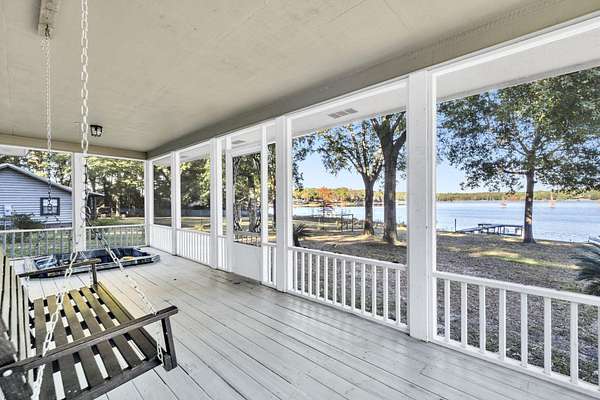 Rare opportunity to own a LAKESIDE RETREAT nearly 2 acres of fully fenced waterfront property on Lake Holley, a 400-acre fishing lake known for trophy bass, bream, and bluegill. This two-story home offers a functional layout with a fully updated kitchen, tile flooring throughout the main level, and hardwood stairs leading to two spacious upstairs bedrooms. The main-floor primary suite provides convenient single-level living, and large windows offer peaceful lake views and natural light. A screened-in back porch overlooks the water, while the private dock is ideal for fishing, kayaking, or simply enjoying the sunset. A detached structure-formerly a she-shed and now accessed by a sidewalk-offers excellent potential as a lock-out guest suite, artist studio, or a short or long-term rental. Multiple outbuildings and covered carports offer storage, workshop potential, and parking for RVs or extra vehicles. With no HOA and endless flexibility, this property is perfect as a full-time residence, weekend getaway, or investment opportunity just minutes from DeFuniak Springs.