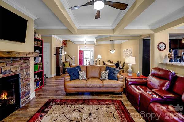 Front porch presence. Fireside comfort. Forever-home feeling. Welcome to 211 Holly Ridge Road-where privacy, character, and everyday comfort come together in a setting that just feels right. From the moment you arrive, the details start telling the story... a big covered front porch anchored by stone veneer columns, a bold red front door, and a homesite surrounded by mostly wooded acreage that gives you space to breathe. This is the kind of place where mornings start slow and evenings linger a little longer. Step inside and you're immediately drawn to the heart of the home-a warm and inviting living room featuring a stone fireplace, beamed ceiling, and paddle fan overhead, creating a space that feels both elevated and comfortable. The layout flows effortlessly into the kitchen, where bar seating, stainless appliances, and thoughtful design make it perfect for gathering. Function meets flexibility with a dedicated home office, plus an expanded pantry/laundry room complete with a sink-because the little things matter more than people admit. The split-bedroom floorplan offers privacy, while the owner's suite delivers a true retreat with direct access to the screened-in rear porch, a stand-alone soaking tub, custom tile flooring, and a furniture-style double vanity that brings a touch of luxury to everyday living. And that back porch? It's the kind of feature that changes how you live-screened, covered, and accessible from both the living room AND the owner's suite, seamlessly connecting indoor comfort with outdoor peace. Step outside and it only gets better... A big fenced backyard is ready for fun, while the concrete fire pit sitting area sets the stage for nights you won't want to end. Beyond the yard, private trails lead down to a creek, giving you your own slice of nature right out your back door. Need more space down the road? You've got it-an expansive unfinished upstairs area is already in place and ready for whatever comes next. Add in a side-load two-car garage, ceiling fans in every bedroom, quality modular construction, and a fully encapsulated crawlspace for improved efficiency and peace of mind, and you've got a home that checks boxes you didn't even know you had. This isn't just a great house on a great lot-this is a place where the possibilities are wide open, and the lifestyle is already waiting. Because at the end of the day, "home isn't where you live... it's where life feels right."