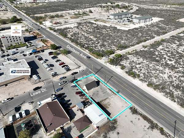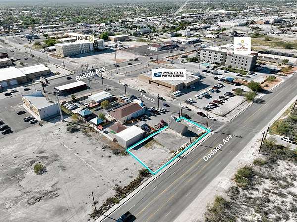 Commercially zoned corner property located at the intersection of Dodson Avenue and Lowe Drive in Del Rio, Texas. This investment opportunity features an approximately 600 square foot office building situated on a 10,500 square foot lot, including approximately 6,254 square feet of paved parking. The building includes two half bathrooms and a functional layout suitable for a variety of commercial uses. The property benefits from excellent visibility and access, with close proximity to Bedell Avenue and strong surrounding commercial activity. Notably, the United States Postal Service facility is located directly across the street, contributing to consistent traffic and area stability. The site offers flexibility for an investor seeking income potential, a small business location, or future redevelopment in a well-established commercial corridor.