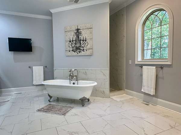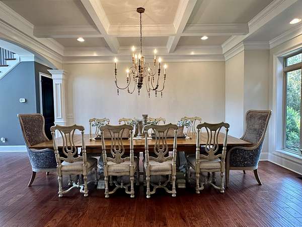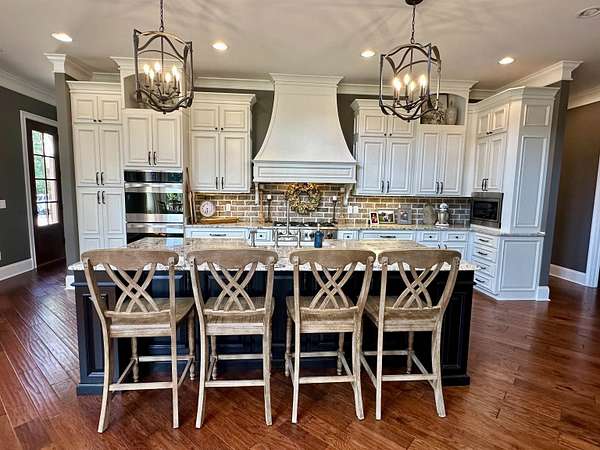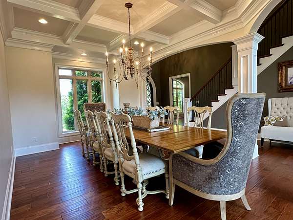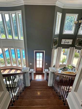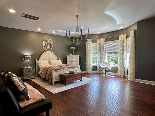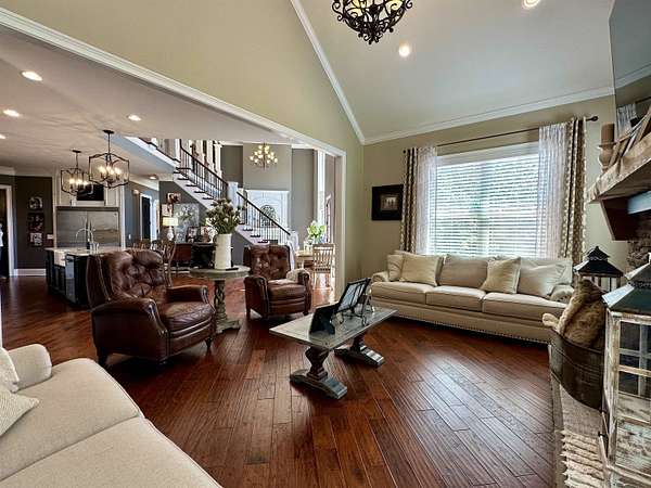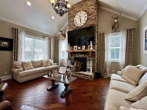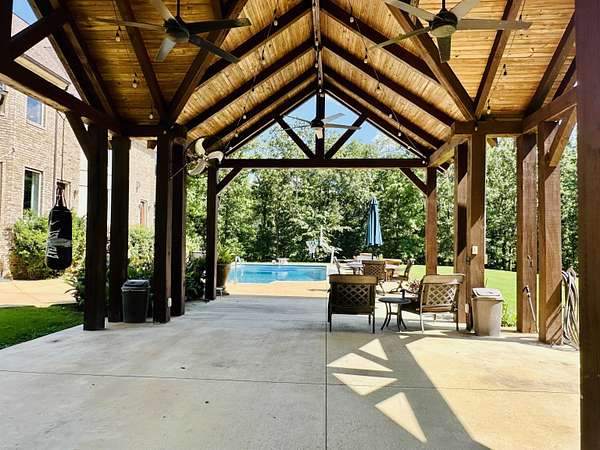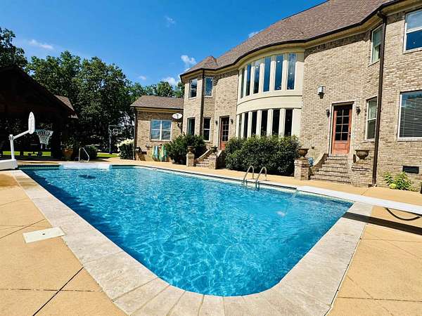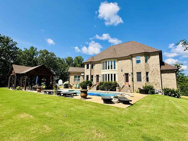 Welcome to your grand estate, sprawled across 7 breathtaking acres of serene landscape! This stunning 5 bedroom, 3.5 bathroom retreat boasts over 6000 sqft of pure luxury, featuring gorgeous hardwood flooring throughout. Breathe in the elegance of the 2-story foyer, formal living room with stone fireplace, and breakfast nook - perfect for sunny mornings. The elevated kitchen dazzles with double oven, large island, ample pantry, and plenty of room for culinary creativity. Unwind in the cozy den with stone fireplace, or retreat to the primary suite featuring trayed ceilings, double entry shower, massive walk-in closets, and a stunning clawfoot tub. Outside, enjoy endless summer fun in the sparkling pool, shaded by a majestic vaulted pergola. A double garage completes this incredible property. Schedule a tour today and make this luxury dream home yours tomorrow!