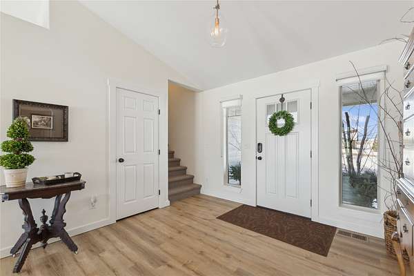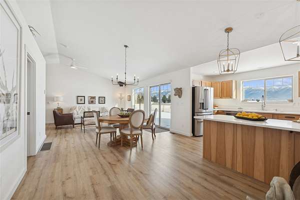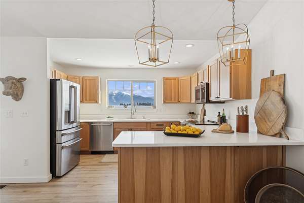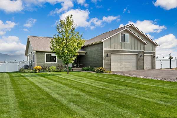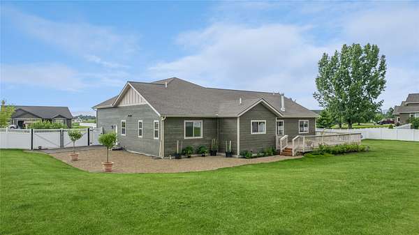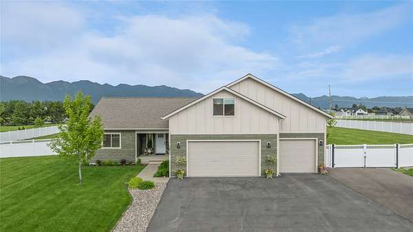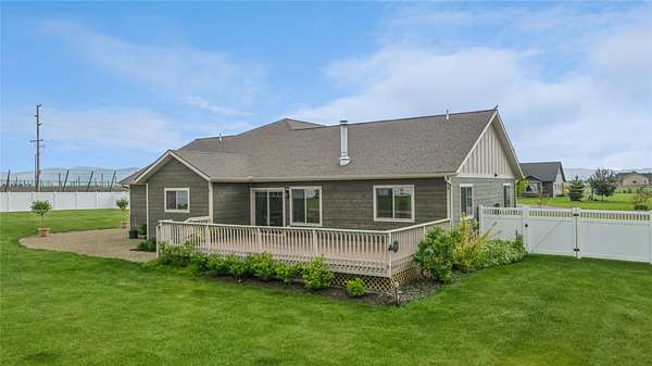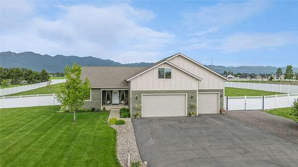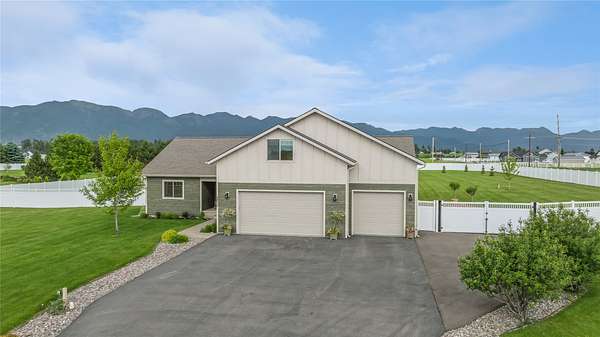Discover comfortable luxury and captivating mountain views with this newly available residence in the desirable north Creston area. Thoughtfully designed, with upgrades throughout, this home is a true masterpiece of style and function, offering a seamless blend of elegance, comfort, and open-concept living that flows naturally between indoor and outdoor spaces. Step through the grand entrance into an impressive foyer that sets the stage for what's to come. The main floor showcases a tranquil primary suite with a spacious ensuite, a well-planned kitchen with walk-in pantry, and soaring ceilings that enhance natural light and openness. Upstairs, a versatile room provides the perfect space for entertaining, a media room, fitness area, or home office. At the heart of the home, the great room features a vaulted ceiling, expansive picture windows, and direct access to a large deck and fenced backyard-perfect for enjoying the incredible mountain views. A place to call home in Montana. Media/theater is also set up as a 4th bedroom with closet. A spacious three-car garage and gated backyard with large gate access to back yard adds to the home's convenience and functionality. Meticulously designed and beautifully maintained, with upgrades by current owner, this property offers an exceptional place to call home. Seller removed wood stove from living room, it is in the garage and maybe put back into living room. The HOA dues are billed separately, Water charge $325 and HOA fee $350