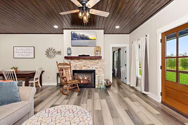 Beautiful newer construction home on 5.42 acres just minutes from Winchester! This 3 BR, 2 BA home, built in 2023, features a modern black metal exterior and metal roof for durability and low maintenance along with a spacious 2-car garage. Enjoy comfortable living with large covered porch on both front and back, an open layout and generous bedrooms, plus a large crawl space offering excellent storage potential. Plenty of room to spread out, garden, or enjoy peaceful country surroundings while still being convenient to town amenities. A great opportunity for those looking for newer construction with acreage and privacy.