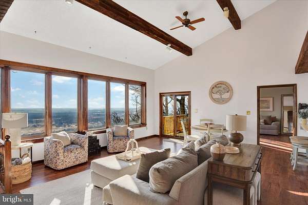 OWN YOUR OWN PIECE OF PARADISE! Perched atop the mountain, this private retreat offers stunning panoramic views and unmatched privacy on 12.9 acres of scenic beauty. Ideal as a primary residence, second home, or income-producing Airbnb, this property presents a rare opportunity to enjoy mountain living while generating short-term rental income. Guests and owners alike will be captivated by the large windows that frame breathtaking views from nearly every room. Relax by the cozy fireplace, unwind in the luxurious soaking tub, or step onto the expansive deck to take in unforgettable sunsets and star-filled skies. The setting offers the peace today's buyers-and renters-are searching for. A detached garage provides ample space to store all your outdoor toys, making this the perfect base for adventure, relaxation, and escape. Private, peaceful, and incredibly versatile, this mountaintop retreat is a rare opportunity to own the view. This home includes the big, red, shed/outbuilding perfect for a workshop or extra storage! Own the privacy. Own the opportunity! A TRUE JOY!