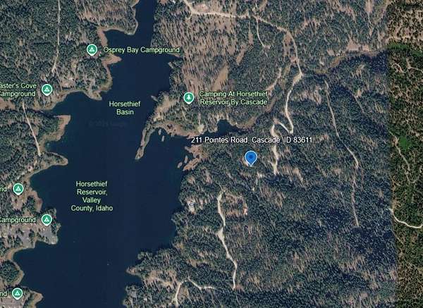 Hwy 55, East on Warm Lake Road about 6 miles, Right on Horsethief Road for about 1.1 miles, Left on Forest Service Road 433, continue through gate to property on right.