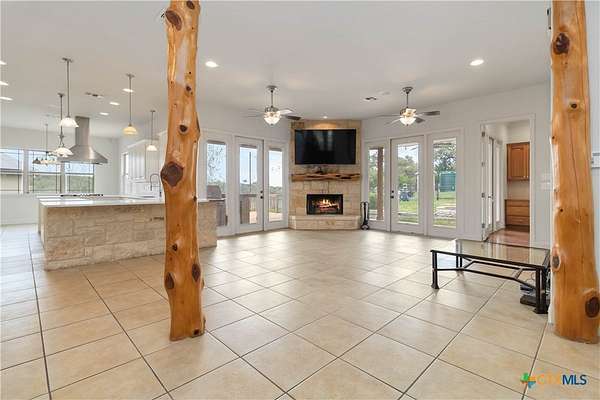Seller offering buy down incentive. (Home is 3290 Sq Ft. separate office is 308 bringing the total square footage to 3598.) Nestled on 6.42 this exceptional estate offers the perfect blend of luxury, functionality, and country charm. The beautifully appointed 4-bedroom, 3-bath home features an inviting open layout ideal for both family living and entertaining. New Carpet installed Nov 2025. This home is ready for move in! At the heart of the home is a gourmet kitchen that will inspire any chef, complete with double ovens, a gas cooktop, custom cabinetry, and ample prep space. Just off the kitchen, you'll find a spacious laundry room complete with sink, generous cabinets and countertops along with front load washer and dryer. Master suite has a private entrance, luxury custom closet and spa style bathroom. Dedicated home office can be accessed from the living room, master suite or patio area. Office offers built-in shelving, perfect for remote work or study. Step outside to your private oasis featuring a sparkling pool, relaxing hot tub, and shaded patios-ideal for those warm Texas evenings. The attached garage includes an additional office space with a full bath, offering flexible use as a creative studio, or workshop. Equestrian or RV enthusiasts will appreciate the multi-use barn, and the fenced and cross-fenced layout is perfect for livestock or enjoying the outdoors. Sustainability meets luxury with solar panels, a water softener, a 2,500-gallon rainwater catchment system dedicated to 26 grafted pecan trees, and a powerful 26kW backup generator for peace of mind. Roof replaced and solar panels installed. These solar panels currently have built a credit in access of over 500.00 carried over to new owner. This rare estate combines upscale living with the tranquility of rural life-all just a short drive from town. Whether you're looking to homestead, entertain, or simply enjoy a private lifestyle, this property has it all.