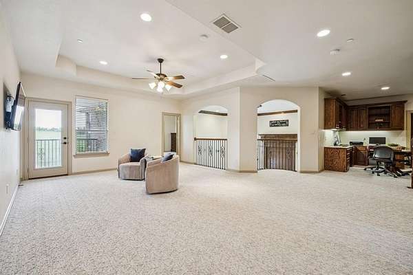 - Built-In Features, Cable TV Available, Chandelier, Decorative Lighting, Double Vanity, Eat-In Kitchen, Flat Screen Wiring, Granite Counters, High Speed Internet Available, In-Law Suite Floorplan, Kitchen Island, Loft, Multiple Staircases, Natural Woodwork, Open Floorplan, Pantry, Second Primary Bedroom, Smart Home System, Sound System Wiring, Vaulted Ceiling(s), Walk-In Closet(s), Wet Bar
