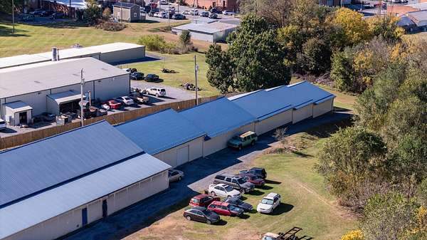 Zoned M1, this large commercial building offers 13,400 sq. ft. The property is made up of 7 large units on the front side and 2 rear side garages measuring 15x50 each. Units A&B offer 2 garage doors 10ft. and 12 ft., 40x50 each, 13 ft. ceilings, bathrooms with sink/toilet and plumbed for hot water heater and shower. Unit C offers a front and rear 8 ft. garage door, 10 ft. ceilings, bath with sink/toilet and plumbed for hot water and shower. Units D-G offer 8ft. ceilings , 7 ft. garage door, bath with sink/toilet and plumbed for hot water heater and shower. All units are well insulated, have separate electric meters and 5 ton HVAC in each unit. The 2 back garages have gas wall units. This commercial building offers unlimited possibilities. Situated on 1.55 acres, makes it ideal for expansion. Storage building on the property is included.