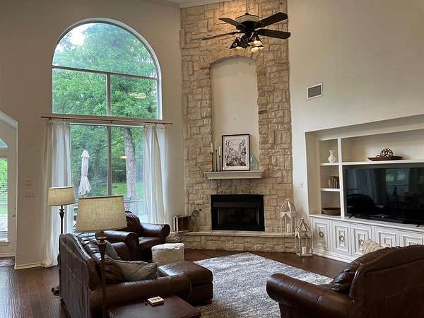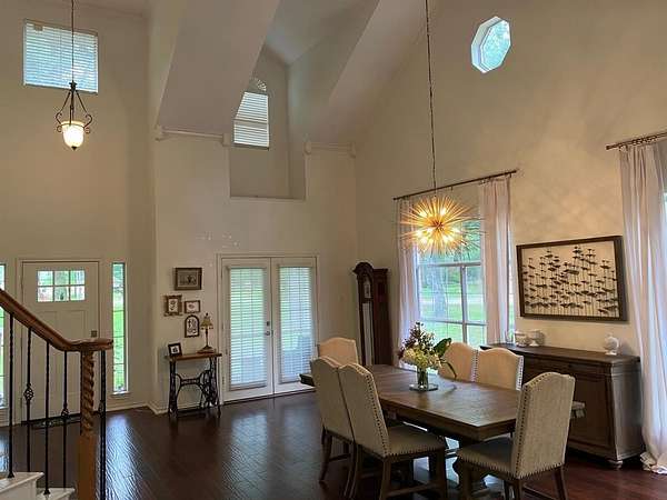 Spacious and well maintained 4 bedroom home tucked away in the peaceful development Pleasant Grove Estates! Soaring ceilings in both living areas make the home feel even more spacious than it already is! Private office with built in bookshelves also located on first floor along with the primary bedroom suite which features its own private sitting area with bay window overlooking the massive wooded and completely fenced back yard complete with tall fencing. The upstairs offers even more space with a massive 20x22 game room in addition to the spacious landing area. All three additional bedrooms upstairs also offer plenty of space for the whole family and then some! This home is located at one of the back corners of the development so there are no neighbors behind you other than more woods and some cows.