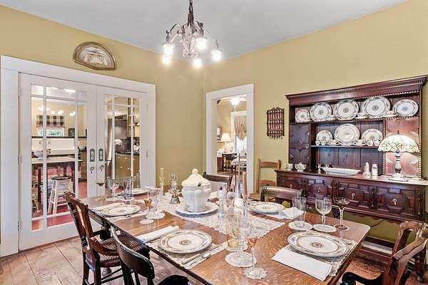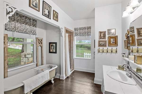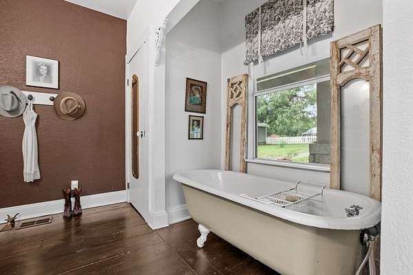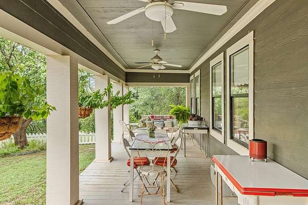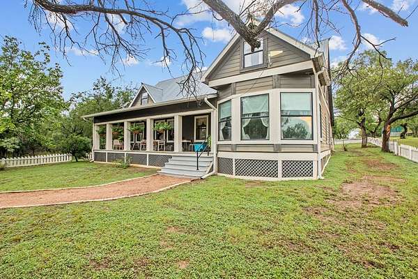 Step into the timeless charm of this beautifully restored late-1800s farmhouse, perfectly situated on over 5 unrestricted acres along the scenic Llano River. Offering approximately 3,012 square feet of inviting living space, this 4-bedroom, 2.5-bath home seamlessly blends historic character with modern comfort. Inside, the home features long-leaf pine and hardwood flooring, high ceilings, walk-in closets, and abundant natural light throughout. The well-designed floor plan includes formal living and dining areas, a cozy breakfast nook, an office nook, generous upstairs storage, and a luxurious primary suite on the main level. Expansive covered front and back porches provide ideal spaces to relax and take in the peaceful Hill Country surroundings. The gently sloping backyard leads to a wide stretch of open-water Llano River frontage, complete with beach access for swimming, kayaking, or simply enjoying the serene views. Additional improvements include a greenhouse, water storage tank, detached storage building for tools or water toys, gazebo, and fire pit--perfect for outdoor entertaining. The property is fully perimeter fenced for privacy, and all improvements are located outside the floodplain. Originally relocated from downtown Llano, this farmhouse retains its historic appeal while offering the freedom of unrestricted country living. Whether used as a full-time residence, weekend retreat, or short-term rental, this unique riverside property delivers exceptional charm and tranquility. Some furnishings are available for purchase. Don't miss the opportunity to own this one-of-a-kind Hill Country retreat. Call today to schedule your private showing. Check out our property page: https://www.adamccarroll.com/listings/211-riverside-drive-llano-tx/