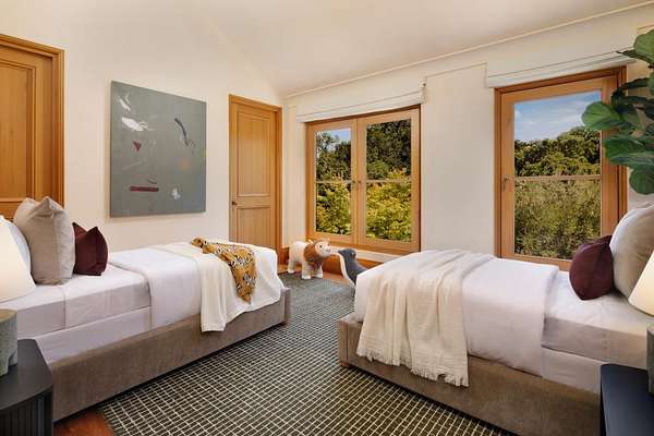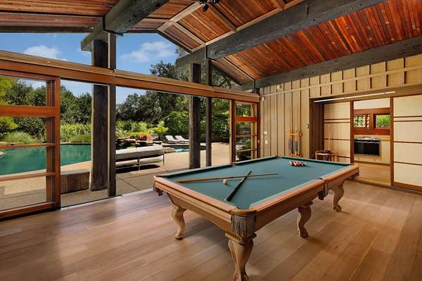 A rare offering on one of Central Woodsides most prestigious streets, just off Mountain Home Road, this extraordinary estate showcases architectural excellence, vineyard beauty, & a luminous natural setting. Spanning almost 4.4 acres with an optional adjacent 3-acre parcel also available, the grounds have been thoughtfully opened to invite abundant sunlight, enhancing both the ambiance and the usability of the land. Designed by Ugo Sap and built by Van Acker Construction, the main residence is defined by dramatic scale, elegant curved forms, and exceptional materials. An elevator connects the two levels, which include six en suite bedrooms including a show stopping primary suite with terrace and spa bath beneath a retractable skylight. The library has walnut paneling and custom wood cabinetry with custom inset lighting. Outdoor living is equally impressive, featuring a thriving Pinot Noir vineyard, olive orchard, and multiple destinations for entertaining. A spacious poolside guest house includes a bedroom, full kitchen, sauna, and bath, while a separate structure with bath and kitchenette is ideal for a fitness center or executive office. Plus a building which has temperature controlled wine storage. A truly world-class property with access to acclaimed Woodside School.