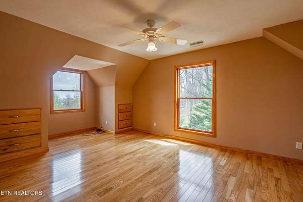 Million-dollar views without the million-dollar price. Welcome to 211 Wolf Run--where every day starts and ends with breathtaking mountain scenery. From your front porch, take in panoramic long-range views overlooking the valley, with rolling fog in the mornings and glowing sunsets at night that feel straight out of the Smoky Mountains. Inside, this cabin-style home features a stunning vaulted living room with soaring wood ceilings and a wall of windows, perfectly positioned to bring those views indoors. The open layout creates a warm, inviting space, complete with a unique hanging swing that adds both charm and character. The kitchen offers solid wood cabinetry, stainless appliances, and functional workspace, while the surrounding deck provides the perfect spot to relax, entertain, and soak in the peaceful setting. Situated on a private wooded lot with a long driveway and usable acreage, this property offers both seclusion and convenience--just a short drive to I-75 and town. A detached garage with additional space above provides excellent potential for a guest suite, workshop, or future rental opportunity. Whether you're looking for a full-time residence, a second home, or a mountain getaway, this property delivers something rare--unmatched views, privacy, and true East Tennessee charm.