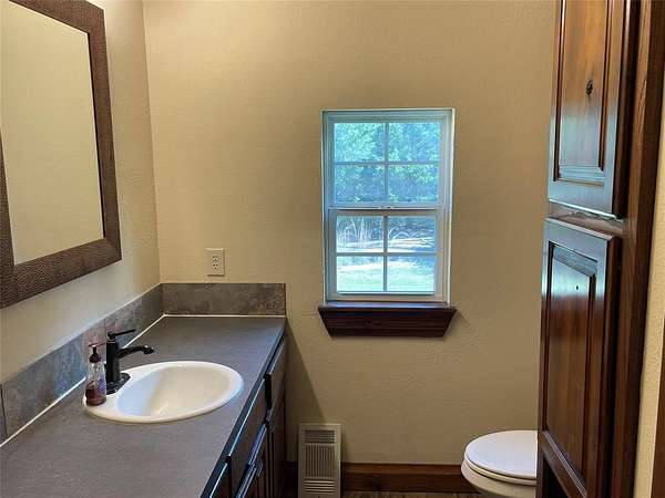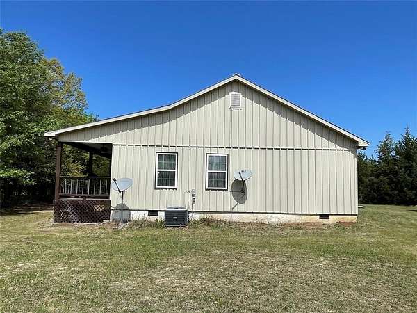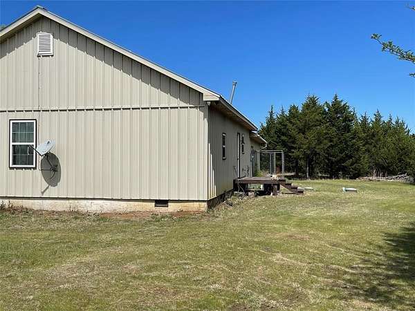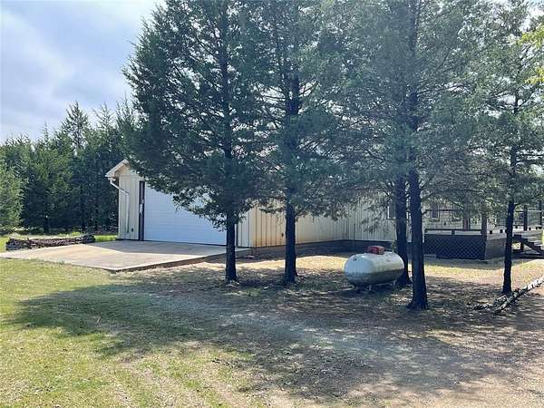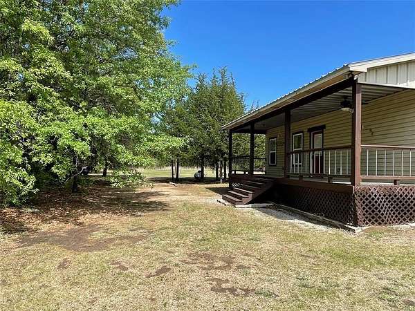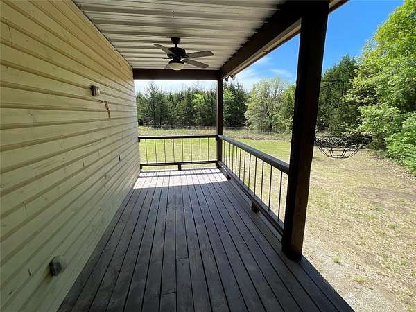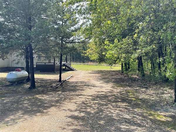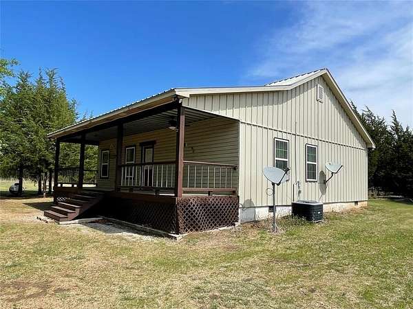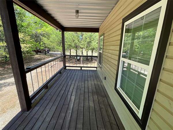 The peace, quiet and tranquility you've been looking for is right here on your own slice of Texas heaven! 2 bed, 2 bath with open living, kitchen and dining along with a big wide front porch (35 x 8 with rail all around) for those relaxing evenings enjoying nature. Heavily treed, so your privacy from the road is secured, yet when you drive in, it opens up into an open area and yard that would be perfect for a garden or chickens or whatever you decide to do with it. Metal siding and metal roof means practically no maintenance and recently leveled with a transferable warranty. Whether a weekend get-away or forever home, this place will not last long. Get out of the rat race, away from the crowds and get out to your own sanctuary in the country where you can relax and enjoy life. Foam insulation and pex plumbing. Nice, tiled, walk in shower in primary bath and huge, built in cabinet, drawers and shelves in secondary bedroom. This property is ready for you! Get with your favorite Realtor and schedule your showing today.