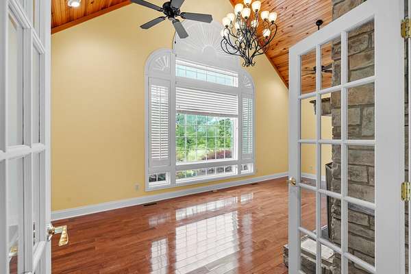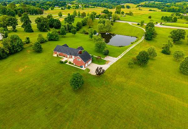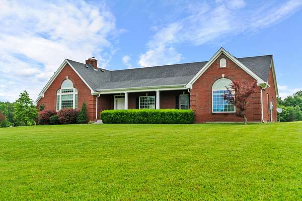 Embrace refined country living on nearly 12 acres of picturesque land, complete with a serene stocked pond and an exceptional custom-built brick ranch home. Thoughtfully designed, this elegant residence offers 3 spacious bedrooms, 3.5 well-appointed baths, a bonus office space and a partial unfinished basement with limitless potential. Step inside to discover beautiful hardwood floors that flow through the main living areas, complementing the sophisticated fireplace shared between the living room and sunroom, perfect for cozy evenings or gracious entertaining. The expansive kitchen invites culinary creativity with abundant space for gatherings, while the separate laundry room adds everyday convenience with style. Upstairs, a generous bonus room provides flexible options for an executive home office, guest suite, or additional bedroom space tailored to your needs. Storage is no concern, thanks to abundant closet space throughout. Outdoors, enjoy the brand new back deck overlooking your private acreage, ideal for morning coffee or simply soaking in the peaceful views.. The property also includes a two-car garage for secure parking and additional storage. All of this is perfectly situated just minutes from I-64, offering effortless commuting while maintaining the tranquility of an upscale country estate. This is your opportunity to own a truly distinctive property that combines natural beauty, modern luxury, and everyday functionality in one exceptional package.